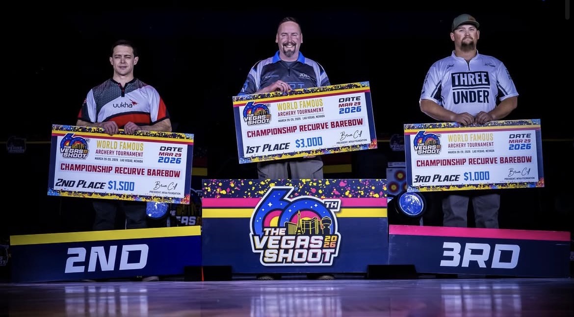 Après une médaille de bronze au Lancaster Classic, René confirme à Vegas avec une superbe 2ᵉ place en Barebow, juste derrière Joel Turner (le père de Bodie…).