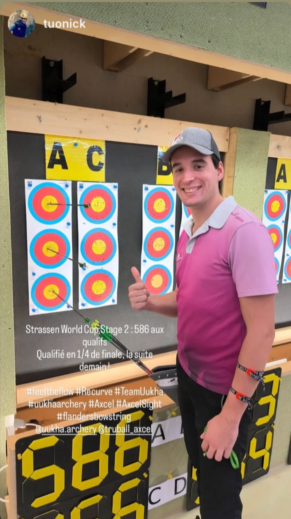 5ème des qualifications devant une fois de plus de très nombreux athlètes de haut niveau internationaux, archers olympiens pour certains, Florian (actuel Champion de France en salle) a su confirmer à nouveau son excellente forme.
